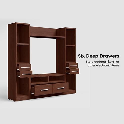 Wire management provision from TV to set top box through the panels ensures neat, concealed wiring organization of devices.
