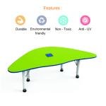 It is a new designed shape activity table have round and smooth edges for the safety. It is made of pre laminated HDHMR board. Adjustable legs are used in table for adjust the table height. Dino chair have different size and color. It is well balanced for comfort and safety.