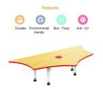 It is a new designed shape activity table have round and smooth edges for the safety. It is made of pre laminated HDHMR board. Adjustable legs are used in table for adjust the table height. Dino chair have different size and color. It is well balanced for comfort and safety.