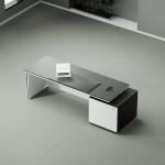 Director CEO for Office Table Flat Straight Manager Desk with White Leg Storage With Lockable, Wire Manager Matte Black