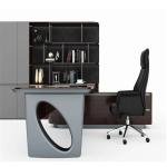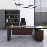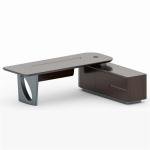 Director & Executive L-Shape Office Table Modern Desk Made in Plywood with Drawer & Wire Manager - Brown & Grey