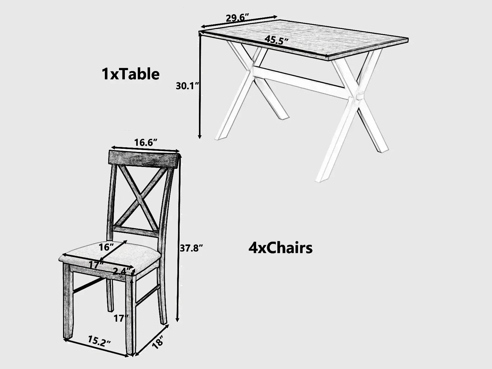 | Table Dimensions(Inches) | 45.5L x 29.6W x 30.1H |