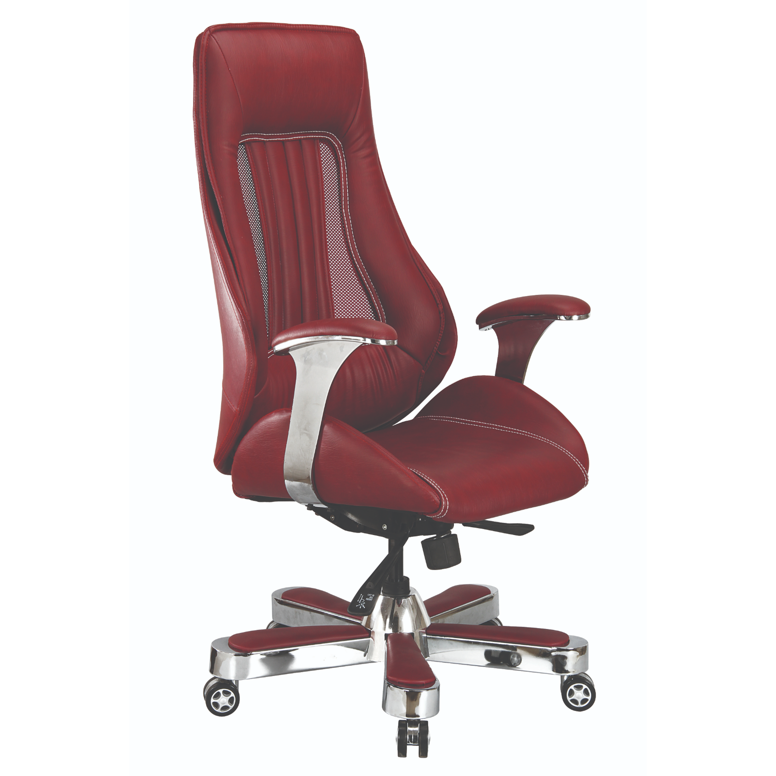 Executive Boss Chair PVC Leather Upholstered with Aluminium Base - Red