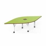 It is a new designed shape activity table have round and smooth edges for the safety. It is made of pre laminated HDHMR board. Adjustable legs are used in table for adjust the table height. Trunk chair have different size and color. It is well balanced for comfort and safety.