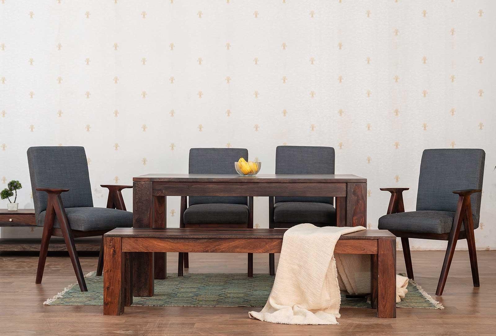 | Material (Chair and Bench Chair) | Solid Wood with Premium Fabric Upholstery |