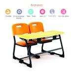 A sturdy comfortable studying arrangement suitable for two children. A combination of plastic and powder-coated steel frame ensures a safe, robust and maintenance free product. Separate area for keeping pencils, erasers etc. It is ideal for Schools, Play Schools and Creches.