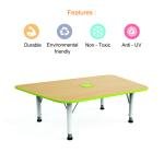 It is a new designed shape activity table have round and smooth edges for the safety. It is made of pre laminated HDHMR board. Adjustable legs are used in table for adjust the table height. Robo chair have different size and color.