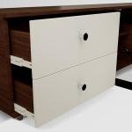 Brimming with sophistication, the Meraki media unit showcases a classic design with modern touches, including a luxurious Noce Versailles laminate finish that adds a touch of elegance to your home decor.