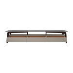 Meridian Media Unit Grey MDF boasts a flamboyant design with an elegant glass top attached via UV discs to a rubberwood frame. Its aesthetic beige complements urban interiors well.