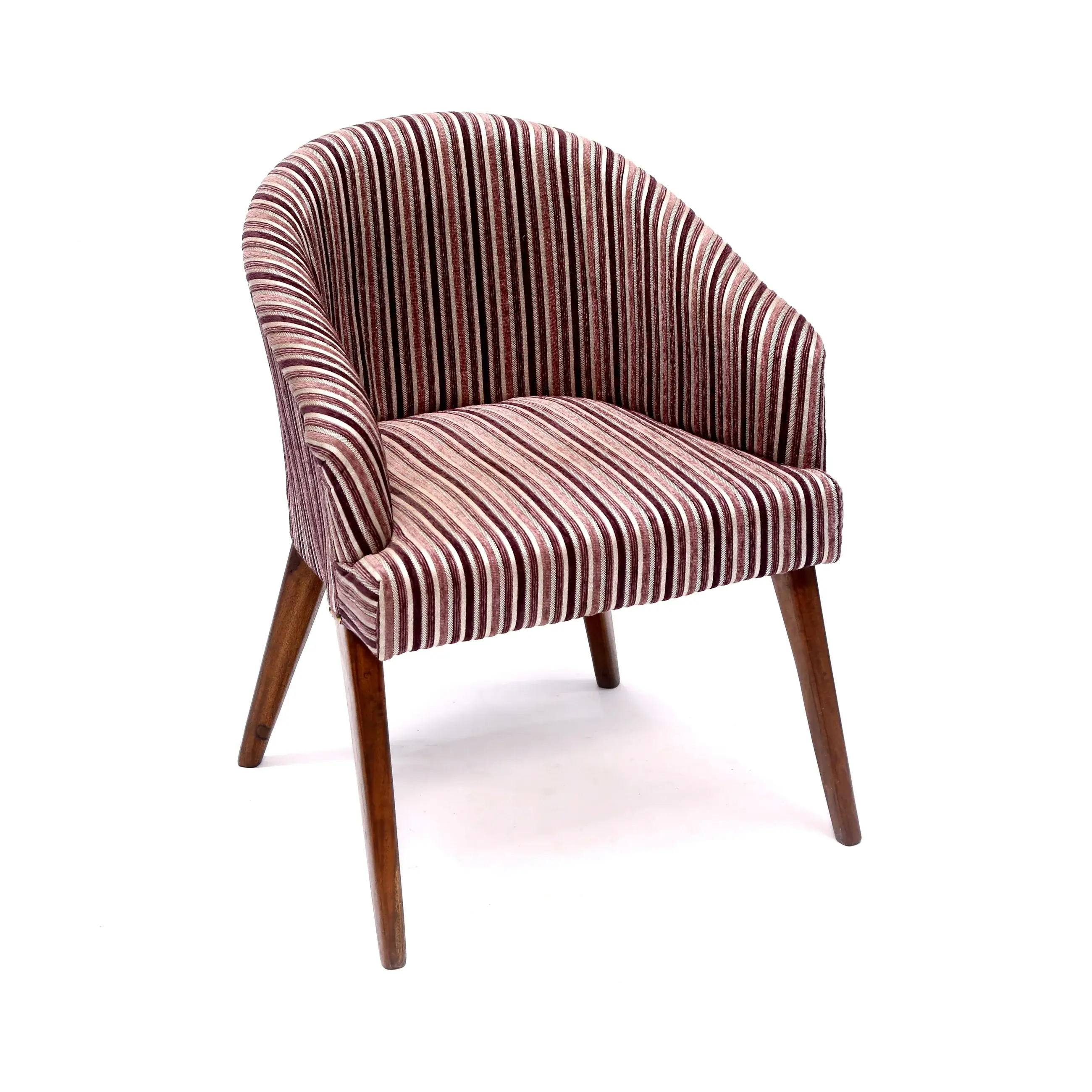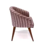 This retro-style armchair features timeless striped patterns that add elegance to any room. It offers superior comfort with plush cushions and ergonomic design for optimal support. Crafted with high-quality materials, it is durable and built to last. The armchair is versatile and complements any decor, creating a cozy atmosphere. It requires minimal upkeep with stain-resistant fabric and easy-to-clean surface, allowing for more relaxation time.