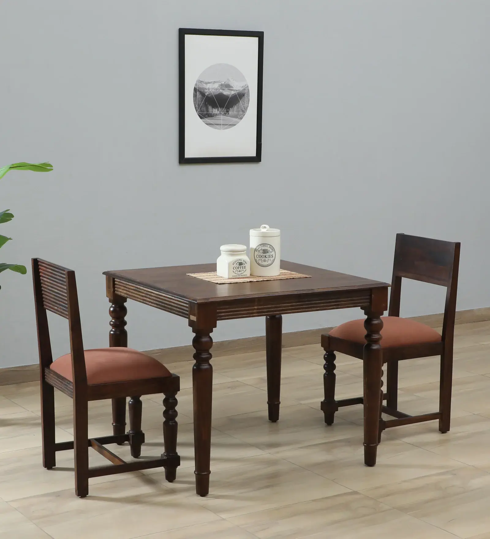 Sheesham Wood 2 Seater Dining Set In Provincial Teak Finish And Mocha Mousse Colour