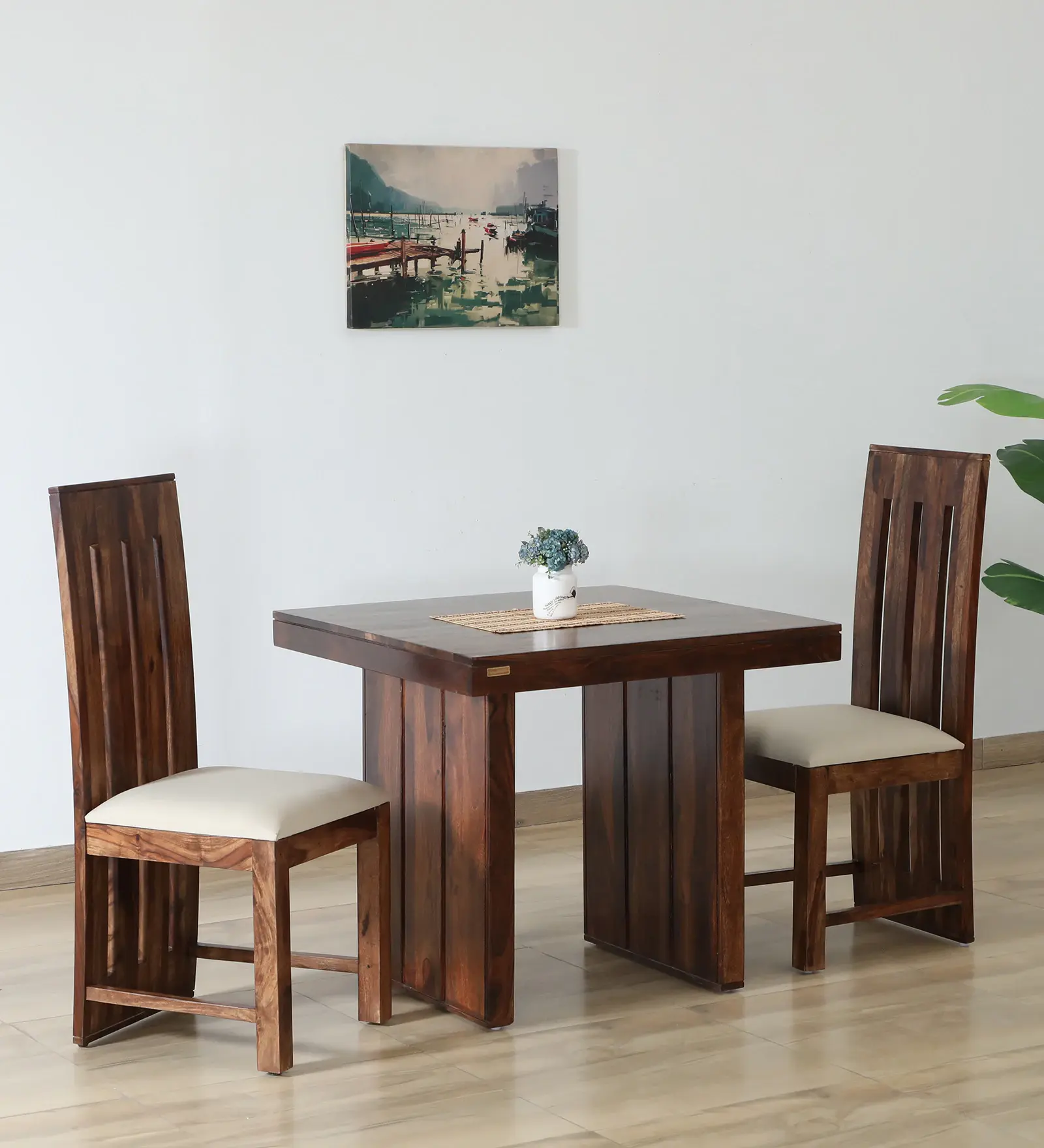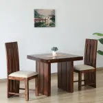 Solid Sheesham Wood Dining Room Sets 2 Seater Poster Dining Table with 2 Cushions Chairs