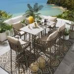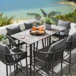WS Outdoor Patio Bar Set 6 Chairs and 1 Table Set Braided & Rope