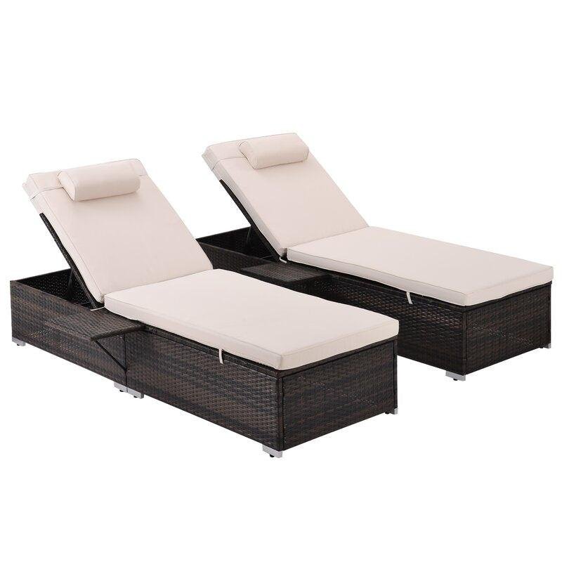 Whether you're soaking up the sun poolside or just lounging with your latest summer read, this chaise lounges is just the thing for helping you enjoy the outdoors. Crafted with an outer frame of white-finished resin wicker wrapped around an inner MS frame, each chaise is weather-, water-, and UV-resistant, making them perfect for living on your patio or deck. Plus, each one features five reclining positions (including fully flat) to help you get comfortable. Best of all, they arrive fully assembled with included cushions, you can stretch out and lounge as soon as it arrives.